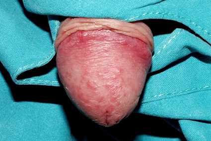 2、急性浅表性龟头炎:初起时局部潮红,阴茎的皮肤发红、肿胀、破皮,自觉龟头有灼热和瘙痒的感觉。翻开包皮,可见包皮内面及龟头充血糜烂,有渗液,甚至于出血。继发感染后可见小溃疡,有恶臭的乳白色脓性分泌物。 >>>有类似症状,点击咨询专家